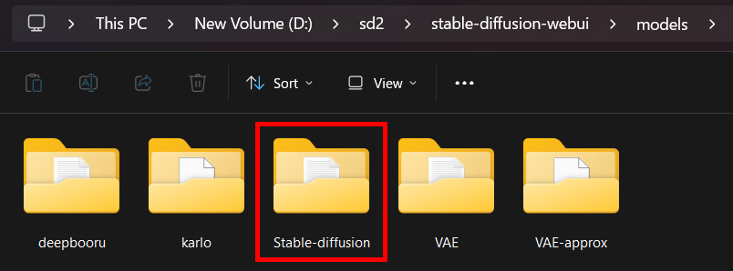 「stable-diffusion-webui」⇒「models」⇒「Stable-diffusion」にダウンロードしたモデルファイルを設置します。