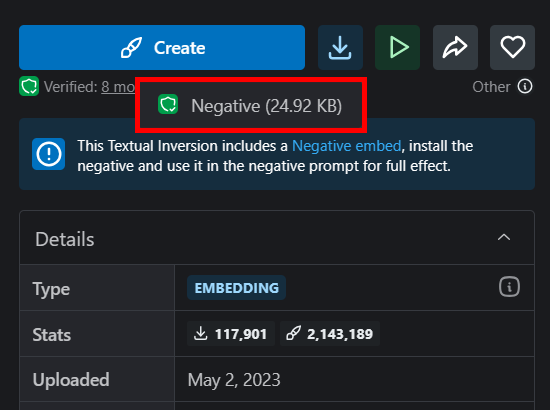 embeddingsとは、主に低品質を避けるために学習されたデータです。ネガティブプロンプトに入れることで効果を発揮します。