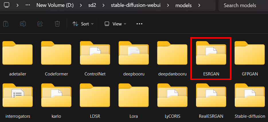 「stable-diffusion-webui」⇒「models」⇒「ESRGAN」にダウンロードしたアップスケーラーファイルを設置します。